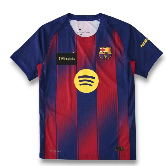 Barcelona Home Player Jersey 25/26 – Official fan version football jersey crafted with high-quality, lightweight fabric for a comfortable and breathable fit. This Barcelona, Season 25/26 jersey showcases authentic design details and club colors, making it perfect for match days, training sessions, or casual wear. Ideal for passionate supporters, football fans, and collectors.